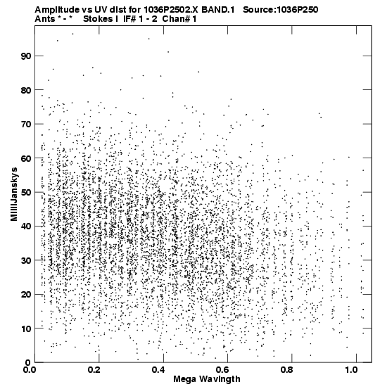 angle, the approximate noise level in prefixed units of Jansky, and a