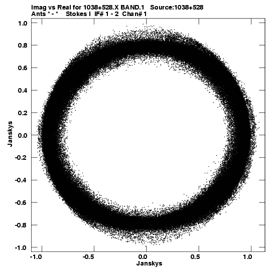 angle, the approximate noise level in prefixed units of Jansky, and a