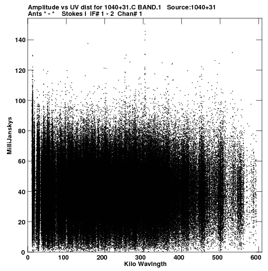 angle, the approximate noise level in prefixed units of Jansky, and a