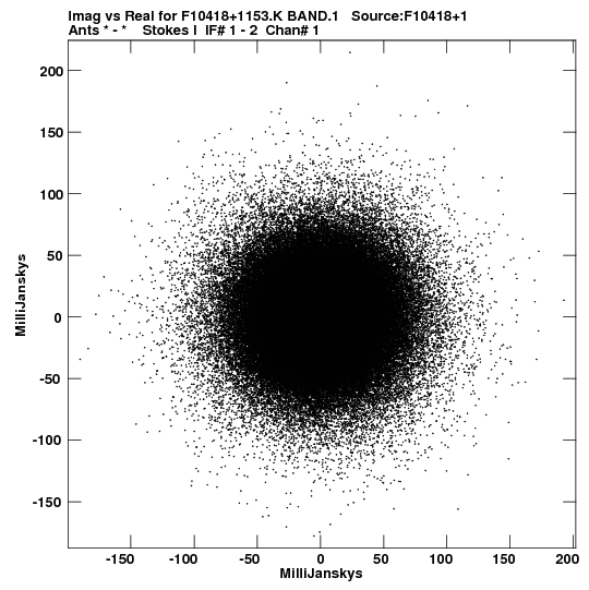 angle, the approximate noise level in prefixed units of Jansky, and a