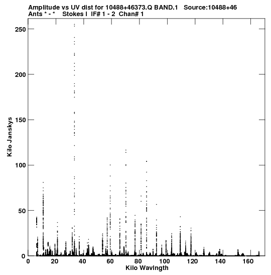 • Links is a collection of links that will show you the GIF uv-coverage and visibility plot for this data set in pop-up windows. See the README file on how to interpret these plots. They'll also get you to the project pipelining scripts and information log files as well as the full multi-source archive data on this project.