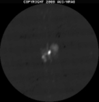 • JPEG shows a thumbnail of the pipeline image. Clicking it will show you a larger version in the browser. Both JPEG images have a square transfer function to emphasize the lower levels a bit more; do not use the JPEGs for scientific purposes (see next). As a guideline, the lighter a thumbnail, the less difference between the peak flux density and the rms noise level, i.e., don't expect to see too much in in light gray images, especially if the rms noise given in the next column is in the order of microJy or less. On the other hand, dark images have a strong source in there somewhere.. (try looking in the center of the image).