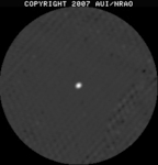 • JPEG shows a thumbnail of the pipeline image. Clicking it will show you a larger version in the browser. Both JPEG images have a square transfer function to emphasize the lower levels a bit more; do not use the JPEGs for scientific purposes (see next). As a guideline, the lighter a thumbnail, the less difference between the peak flux density and the rms noise level, i.e., don't expect to see too much in in light gray images, especially if the rms noise given in the next column is in the order of microJy or less. On the other hand, dark images have a strong source in there somewhere.. (try looking in the center of the image).
