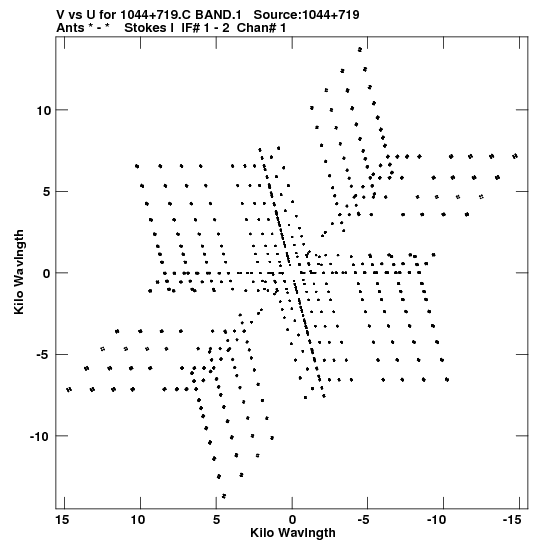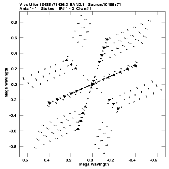 • Links is a collection of links that will show you the GIF uv-coverage and visibility plot for this data set in pop-up windows. See the README file on how to interpret these plots. They'll also get you to the project pipelining scripts and information log files as well as the full multi-source archive data on this project.