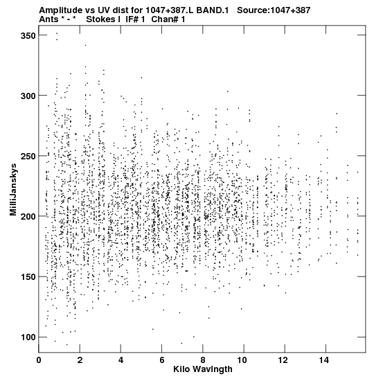 angle, the approximate noise level in prefixed units of Jansky, and a