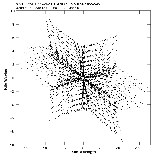 • Links is a collection of links that will show you the GIF uv-coverage and visibility plot for this data set in pop-up windows. See the README file on how to interpret these plots. They'll also get you to the project pipelining scripts and information log files as well as the full multi-source archive data on this project.
