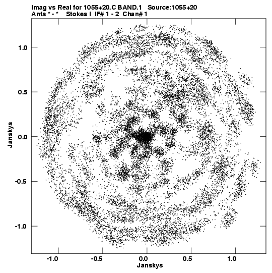 angle, the approximate noise level in prefixed units of Jansky, and a
