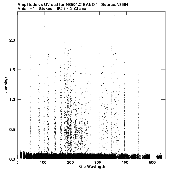 angle, the approximate noise level in prefixed units of Jansky, and a