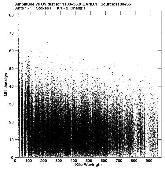 angle, the approximate noise level in prefixed units of Jansky, and a