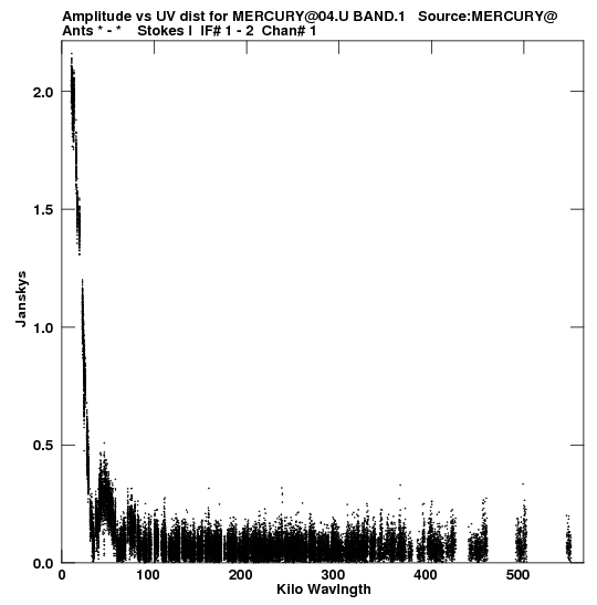 angle, the approximate noise level in prefixed units of Jansky, and a