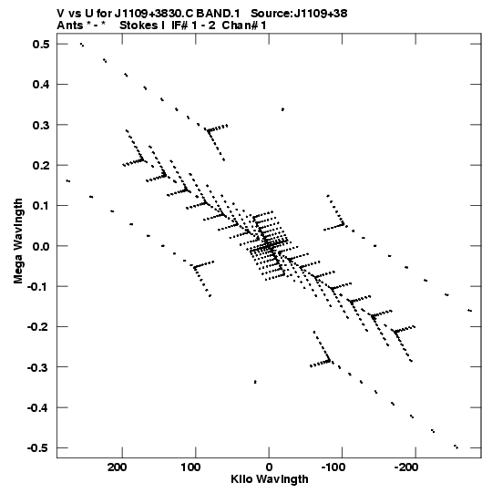 • Links is a collection of links that will show you the GIF uv-coverage and visibility plot for this data set in pop-up windows. See the README file on how to interpret these plots. They'll also get you to the project pipelining scripts and information log files as well as the full multi-source archive data on this project.