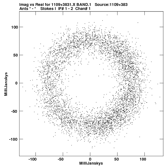 angle, the approximate noise level in prefixed units of Jansky, and a
