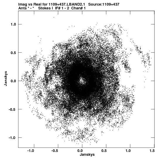 angle, the approximate noise level in prefixed units of Jansky, and a