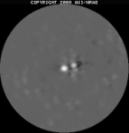 • JPEG shows a thumbnail of the pipeline image. Clicking it will show you a larger version in the browser. Both JPEG images have a square transfer function to emphasize the lower levels a bit more; do not use the JPEGs for scientific purposes (see next). As a guideline, the lighter a thumbnail, the less difference between the peak flux density and the rms noise level, i.e., don't expect to see too much in in light gray images, especially if the rms noise given in the next column is in the order of microJy or less. On the other hand, dark images have a strong source in there somewhere.. (try looking in the center of the image).