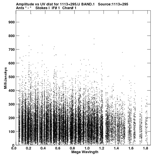 angle, the approximate noise level in prefixed units of Jansky, and a