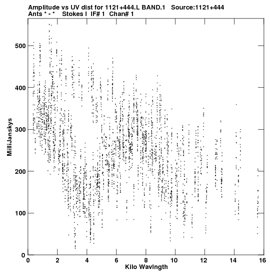 angle, the approximate noise level in prefixed units of Jansky, and a