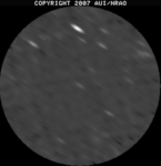 • JPEG shows a thumbnail of the pipeline image. Clicking it will show you a larger version in the browser. Both JPEG images have a square transfer function to emphasize the lower levels a bit more; do not use the JPEGs for scientific purposes (see next). As a guideline, the lighter a thumbnail, the less difference between the peak flux density and the rms noise level, i.e., don't expect to see too much in in light gray images, especially if the rms noise given in the next column is in the order of microJy or less. On the other hand, dark images have a strong source in there somewhere.. (try looking in the center of the image).