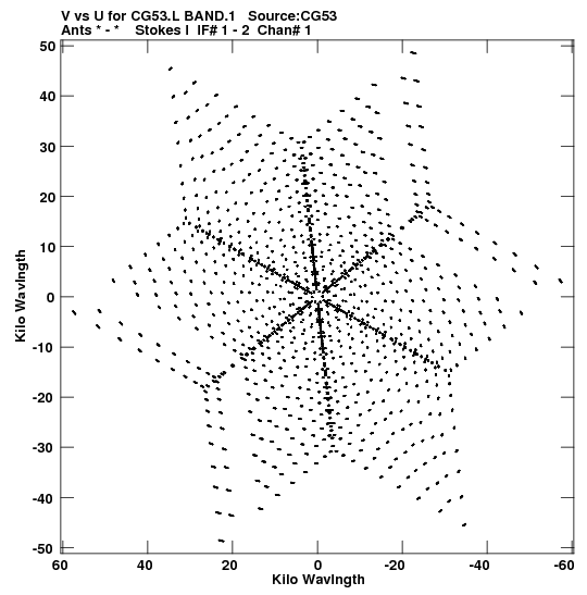 • Links is a collection of links that will show you the GIF uv-coverage and visibility plot for this data set in pop-up windows. See the README file on how to interpret these plots. They'll also get you to the project pipelining scripts and information log files as well as the full multi-source archive data on this project.