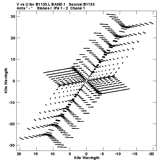 angle, the approximate noise level in prefixed units of Jansky, and a