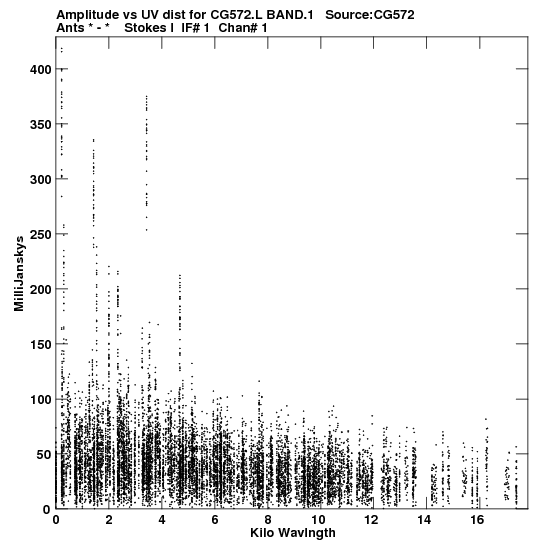 • Links is a collection of links that will show you the GIF uv-coverage and visibility plot for this data set in pop-up windows. See the README file on how to interpret these plots. They'll also get you to the project pipelining scripts and information log files as well as the full multi-source archive data on this project.