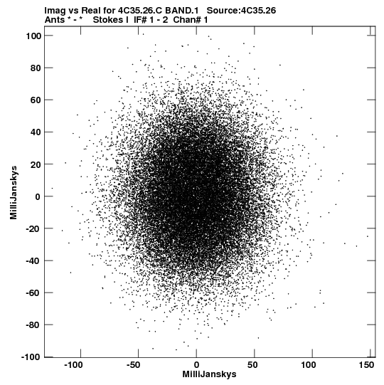 angle, the approximate noise level in prefixed units of Jansky, and a