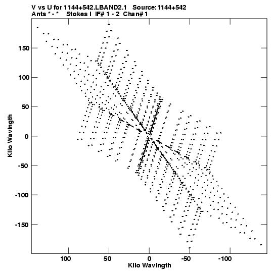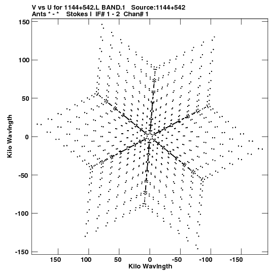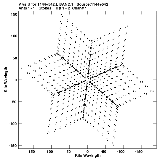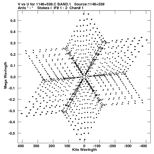• Links is a collection of links that will show you the GIF uv-coverage and visibility plot for this data set in pop-up windows. See the README file on how to interpret these plots. They'll also get you to the project pipelining scripts and information log files as well as the full multi-source archive data on this project.