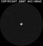 • JPEG shows a thumbnail of the pipeline image. Clicking it will show you a larger version in the browser. Both JPEG images have a square transfer function to emphasize the lower levels a bit more; do not use the JPEGs for scientific purposes (see next). As a guideline, the lighter a thumbnail, the less difference between the peak flux density and the rms noise level, i.e., don't expect to see too much in in light gray images, especially if the rms noise given in the next column is in the order of microJy or less. On the other hand, dark images have a strong source in there somewhere.. (try looking in the center of the image).