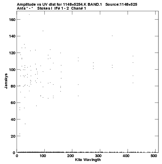 angle, the approximate noise level in prefixed units of Jansky, and a