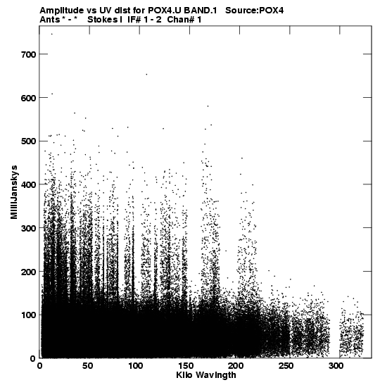 angle, the approximate noise level in prefixed units of Jansky, and a