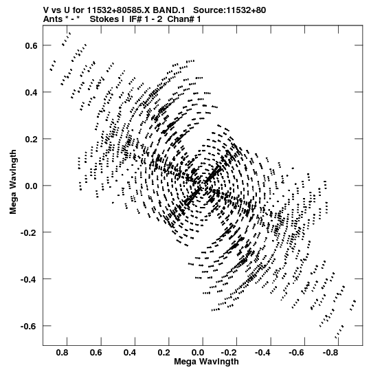 • Links is a collection of links that will show you the GIF uv-coverage and visibility plot for this data set in pop-up windows. See the README file on how to interpret these plots. They'll also get you to the project pipelining scripts and information log files as well as the full multi-source archive data on this project.