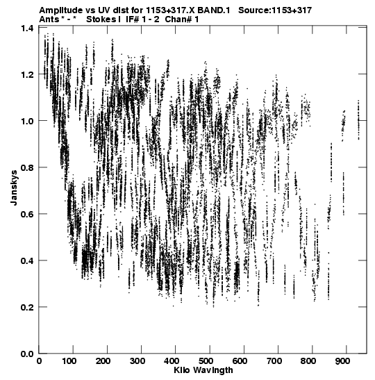 • Links is a collection of links that will show you the GIF uv-coverage and visibility plot for this data set in pop-up windows. See the README file on how to interpret these plots. They'll also get you to the project pipelining scripts and information log files as well as the full multi-source archive data on this project.
