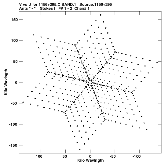 • Links is a collection of links that will show you the GIF uv-coverage and visibility plot for this data set in pop-up windows. See the README file on how to interpret these plots. They'll also get you to the project pipelining scripts and information log files as well as the full multi-source archive data on this project.