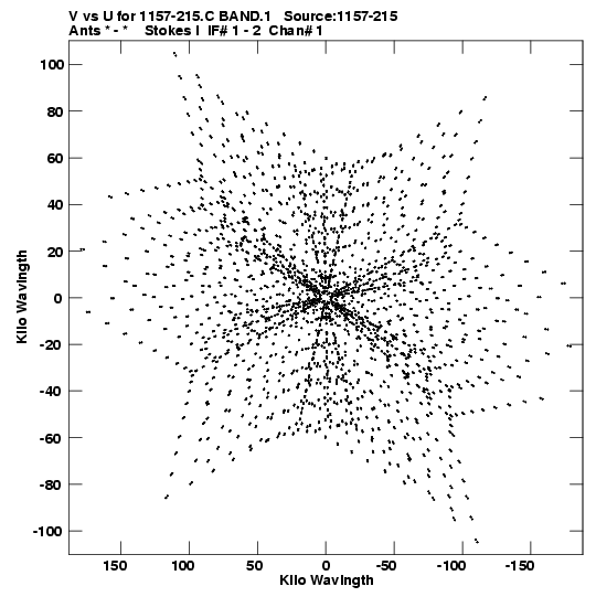 • Links is a collection of links that will show you the GIF uv-coverage and visibility plot for this data set in pop-up windows. See the README file on how to interpret these plots. They'll also get you to the project pipelining scripts and information log files as well as the full multi-source archive data on this project.