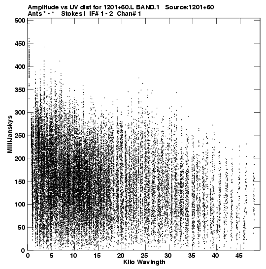 • Links is a collection of links that will show you the GIF uv-coverage and visibility plot for this data set in pop-up windows. See the README file on how to interpret these plots. They'll also get you to the project pipelining scripts and information log files as well as the full multi-source archive data on this project.