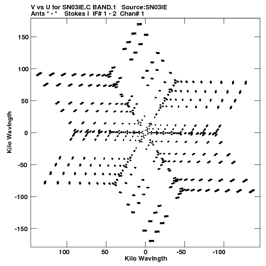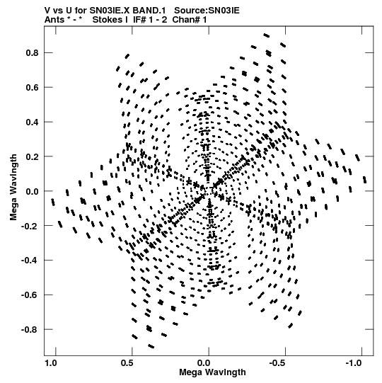 • Links is a collection of links that will show you the GIF uv-coverage and visibility plot for this data set in pop-up windows. See the README file on how to interpret these plots. They'll also get you to the project pipelining scripts and information log files as well as the full multi-source archive data on this project.