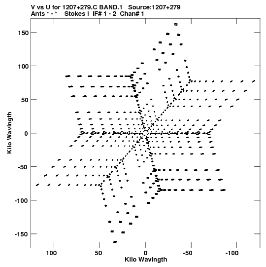 • Links is a collection of links that will show you the GIF uv-coverage and visibility plot for this data set in pop-up windows. See the README file on how to interpret these plots. They'll also get you to the project pipelining scripts and information log files as well as the full multi-source archive data on this project.