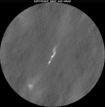 • JPEG shows a thumbnail of the pipeline image. Clicking it will show you a larger version in the browser. Both JPEG images have a square transfer function to emphasize the lower levels a bit more; do not use the JPEGs for scientific purposes (see next). As a guideline, the lighter a thumbnail, the less difference between the peak flux density and the rms noise level, i.e., don't expect to see too much in in light gray images, especially if the rms noise given in the next column is in the order of microJy or less. On the other hand, dark images have a strong source in there somewhere.. (try looking in the center of the image).