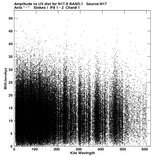 angle, the approximate noise level in prefixed units of Jansky, and a
