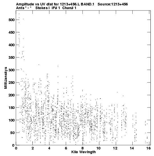angle, the approximate noise level in prefixed units of Jansky, and a