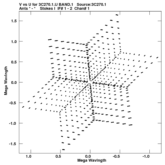• Links is a collection of links that will show you the GIF uv-coverage and visibility plot for this data set in pop-up windows. See the README file on how to interpret these plots. They'll also get you to the project pipelining scripts and information log files as well as the full multi-source archive data on this project.