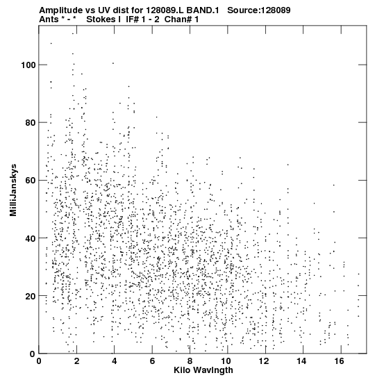 angle, the approximate noise level in prefixed units of Jansky, and a