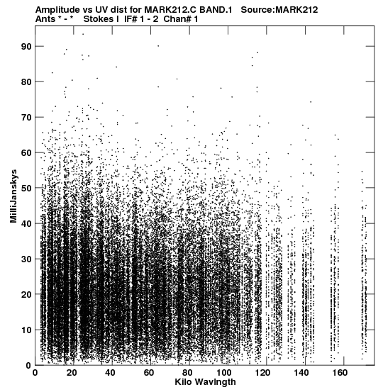 angle, the approximate noise level in prefixed units of Jansky, and a