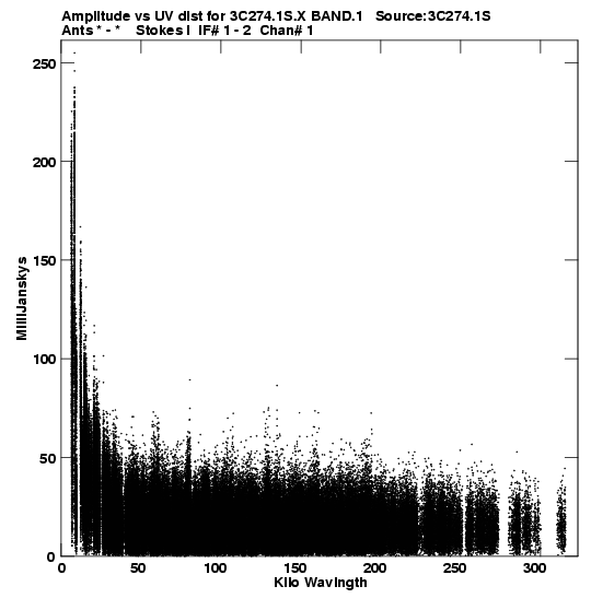 angle, the approximate noise level in prefixed units of Jansky, and a