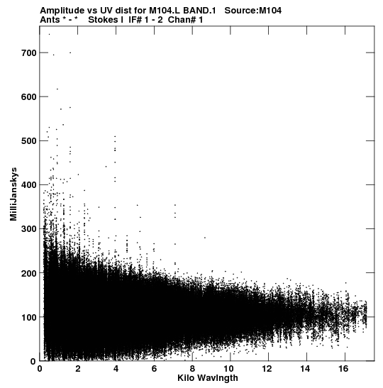 angle, the approximate noise level in prefixed units of Jansky, and a
