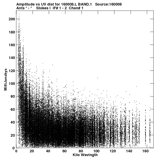 angle, the approximate noise level in prefixed units of Jansky, and a