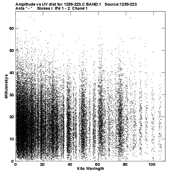 angle, the approximate noise level in prefixed units of Jansky, and a