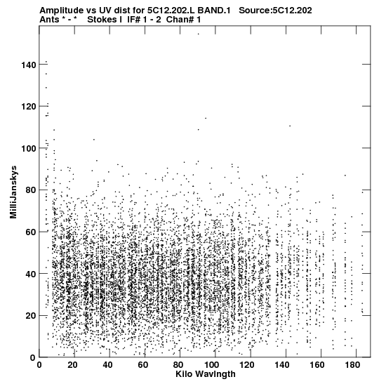 angle, the approximate noise level in prefixed units of Jansky, and a
