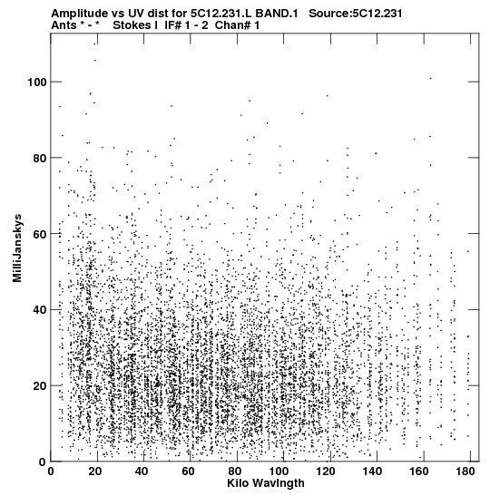 angle, the approximate noise level in prefixed units of Jansky, and a