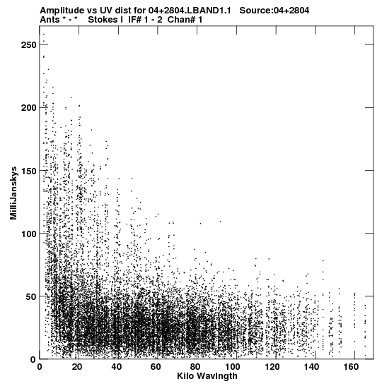 angle, the approximate noise level in prefixed units of Jansky, and a
