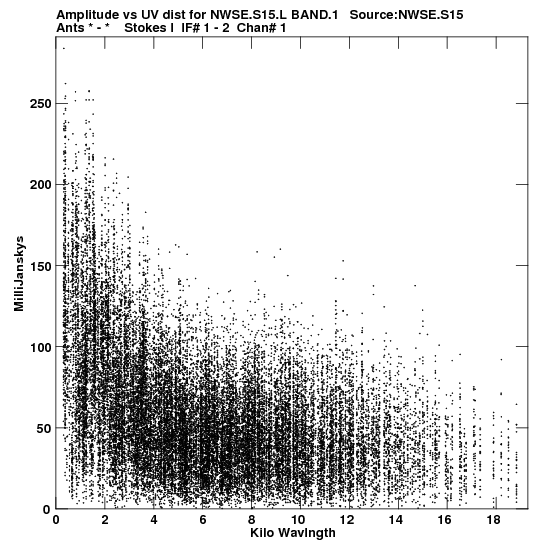angle, the approximate noise level in prefixed units of Jansky, and a